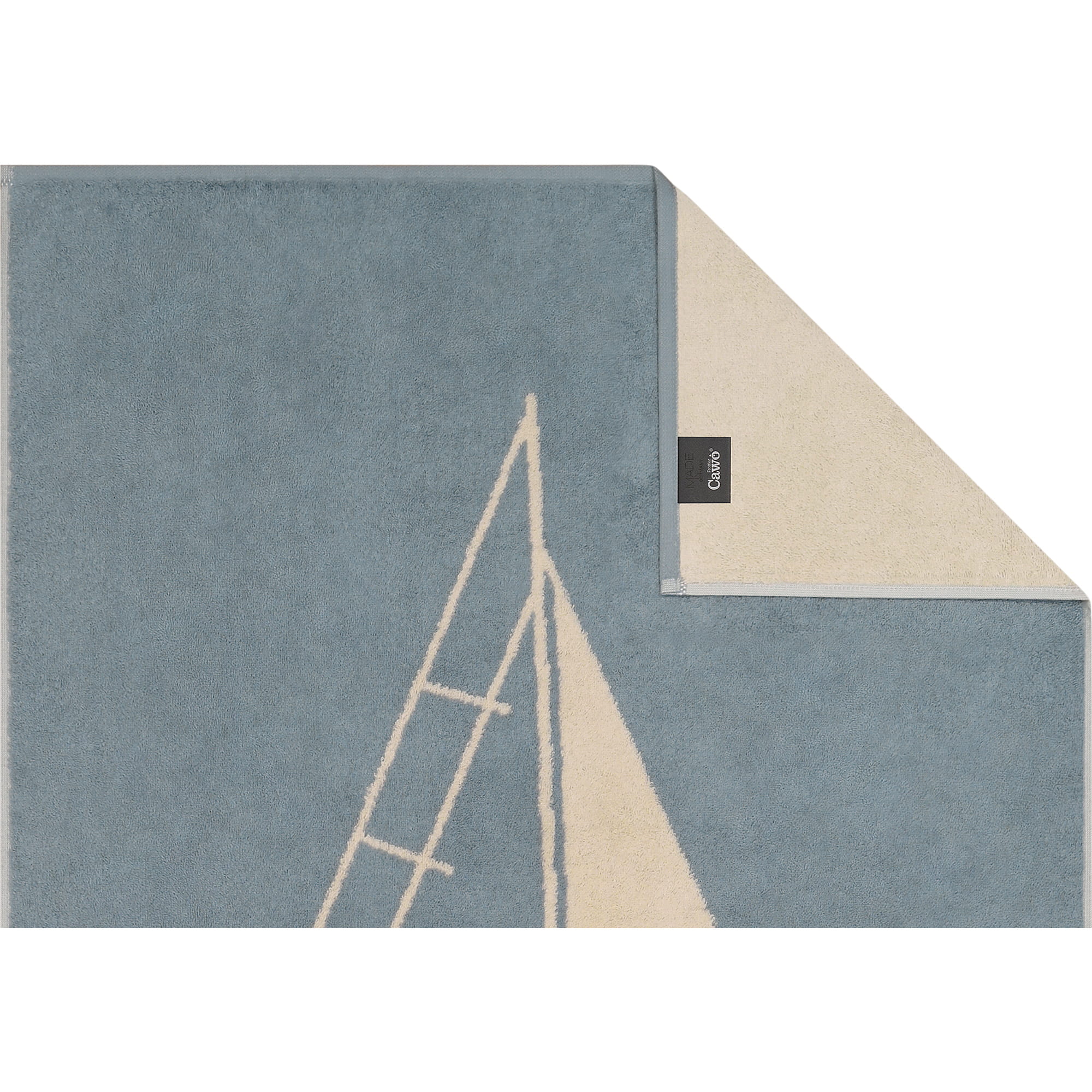 Cawö Saunatuch TRAVEL Sailing Boat – luxuriöse Frottierqualität mit maritim eingewebtem Segelboot-Design. Made in Germany, aus 100 % Baumwolle, pflegeleicht, langlebig und stilvoll für entspannte Wellness-Erlebnisse.