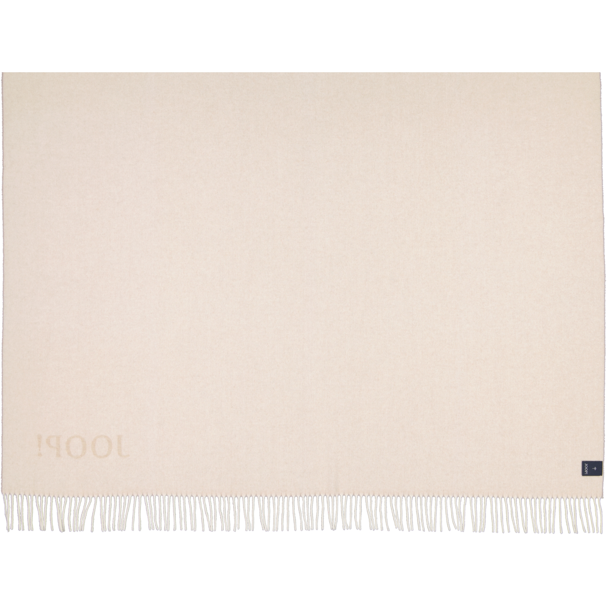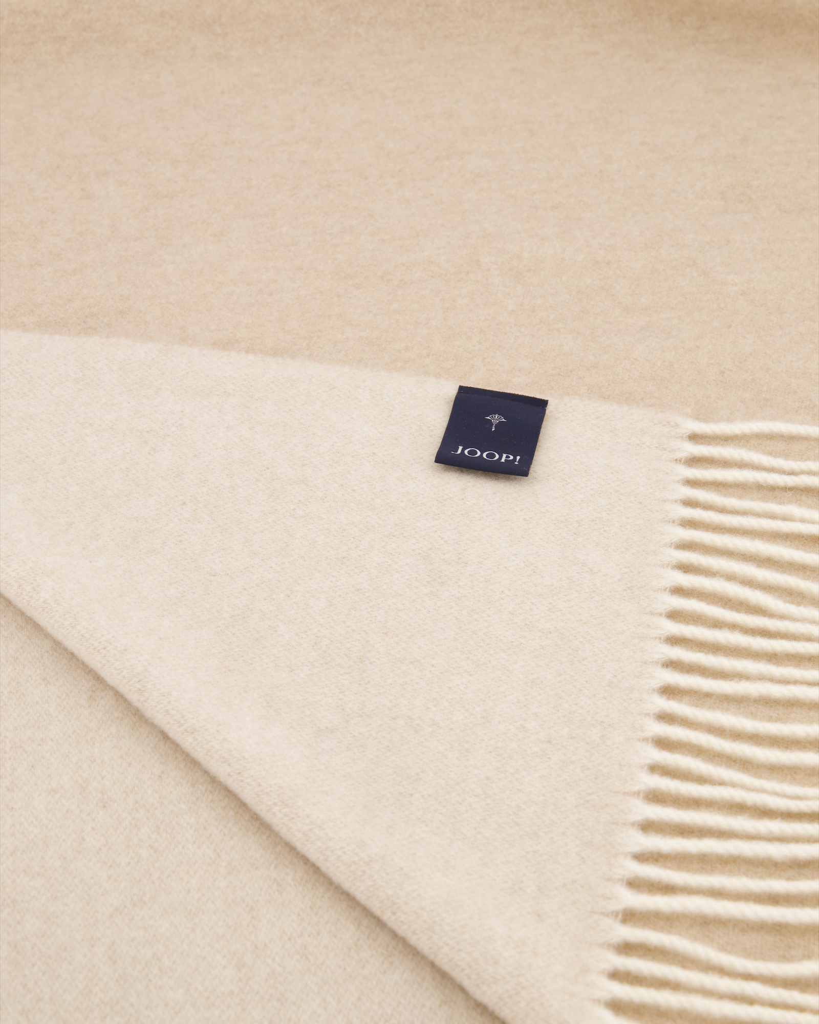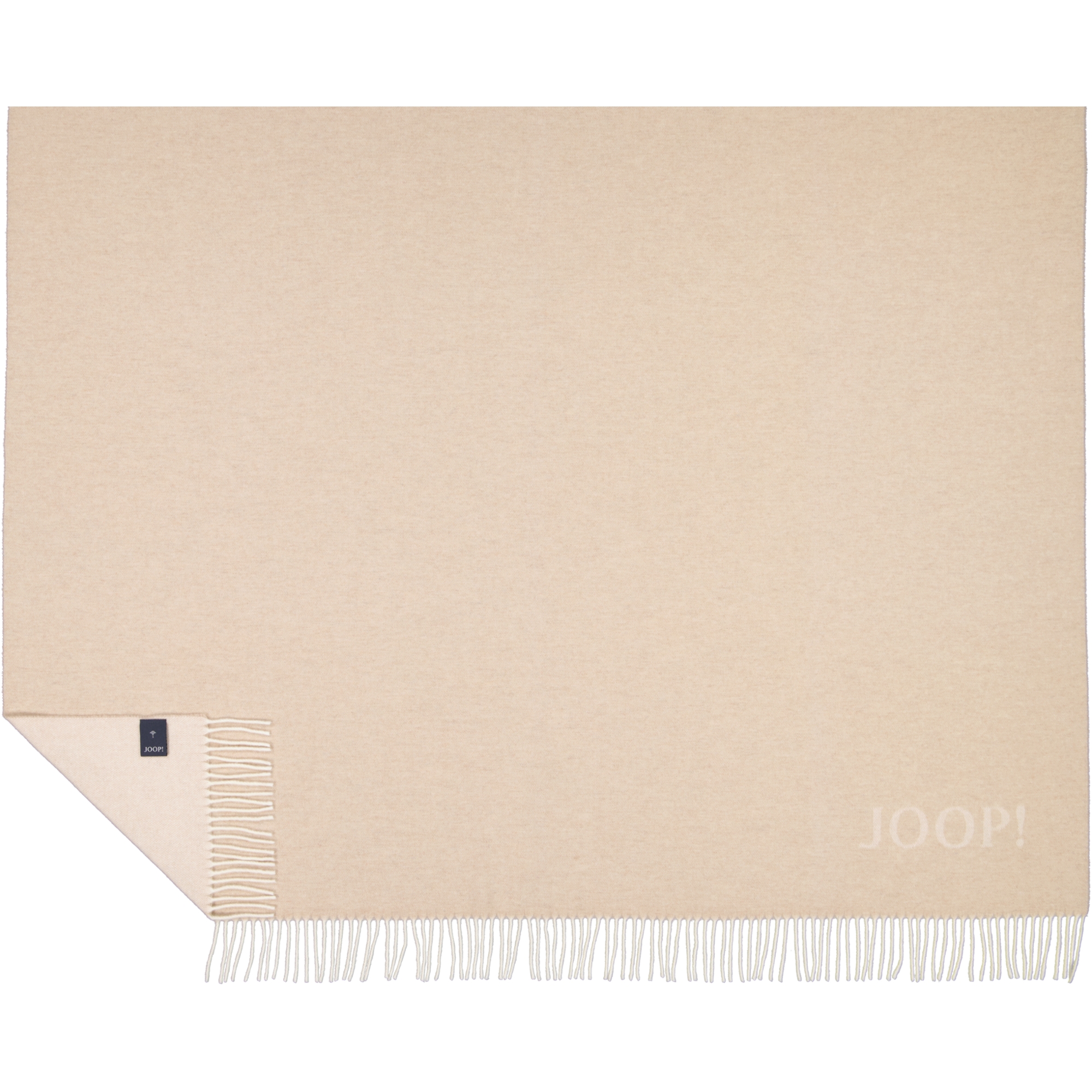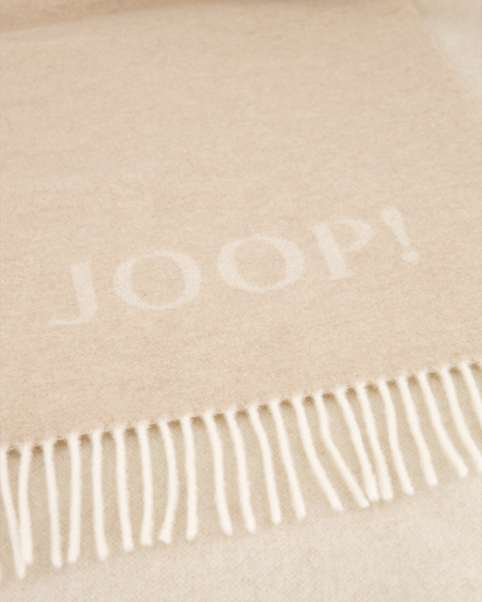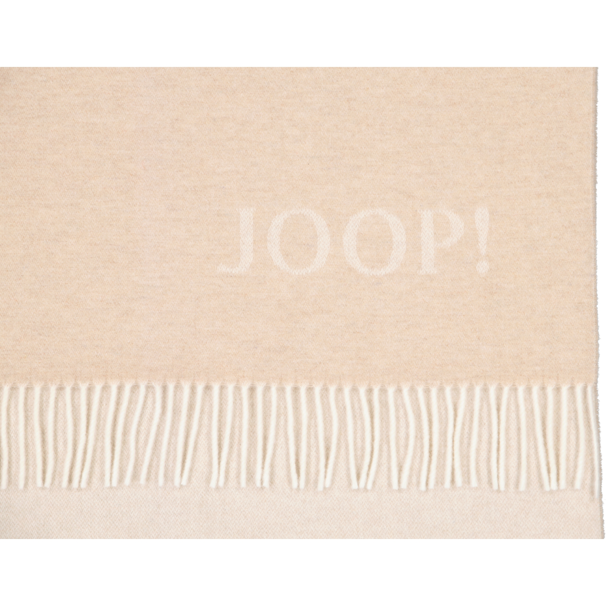 Ein großes JOOP! Logo verleiht dieser Fransendecke ein edles Aussehen.