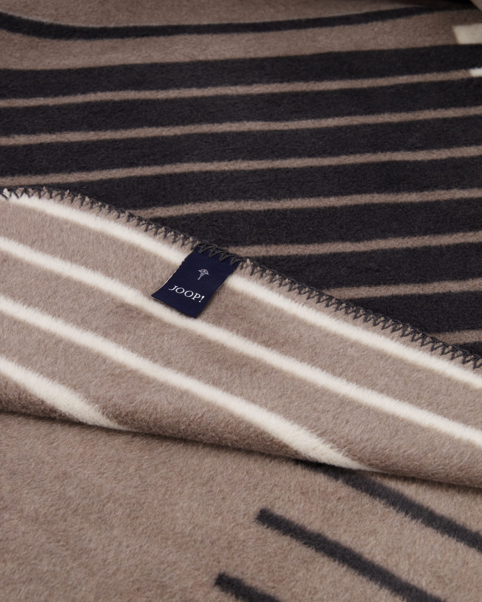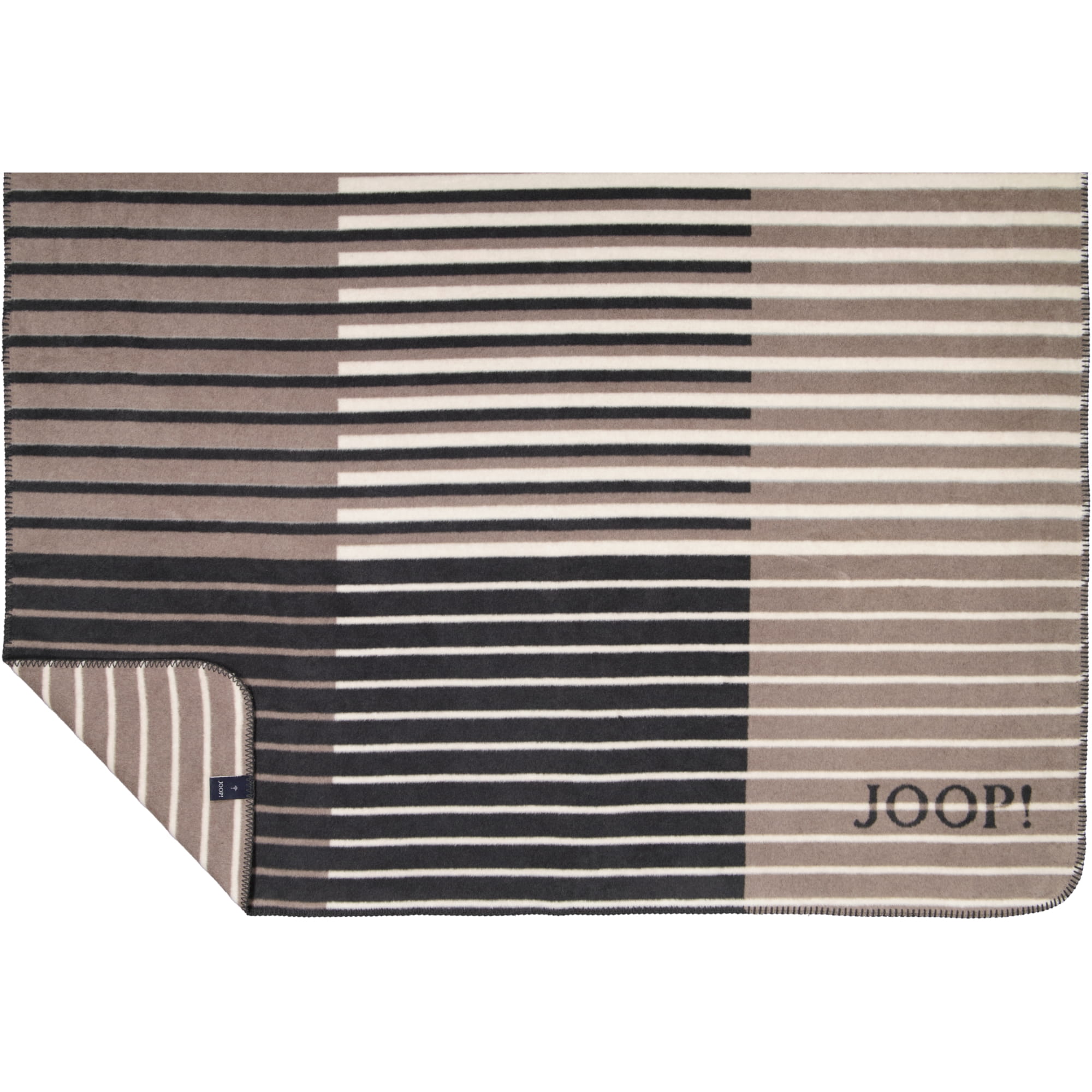 Eine Kombination aus feinen Streifen und rechteckigen Farbflächen macht diese Kuscheldecke zu einem modernen Wohnaccessoire. Ein prägnantes JOOP! Logo und eine attraktiven Zierstich-Einfassung komplettieren diese schöne Wohndecke.